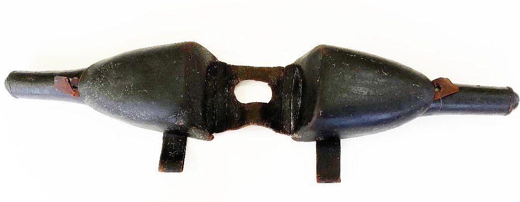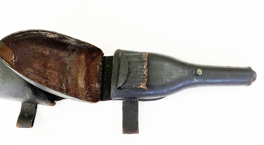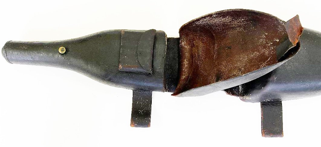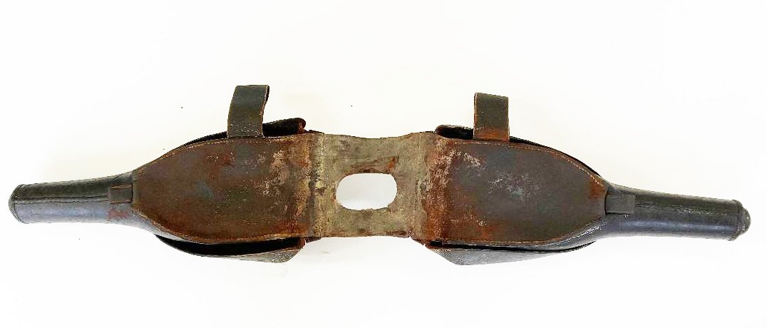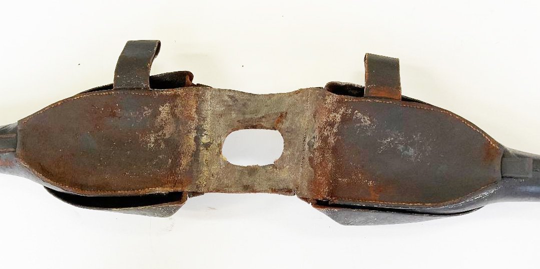 This appears to be the Mexican War period version of the U. S. 1839 pattern saddle holsters. The cartridge tubes measure slightly less than 2 1/2 inches long which seems to indicate they held a percussion cartridge. (For the Model 1842 and converted Model 1836 pistols) Condition is very good for the age. The set is complete and the stiching is not torn. The leather surface is crazed but the leather overall is pliable. The tabs that secure the covers to the brass studs are very worn. Please see the pictures. Shipping $40.00